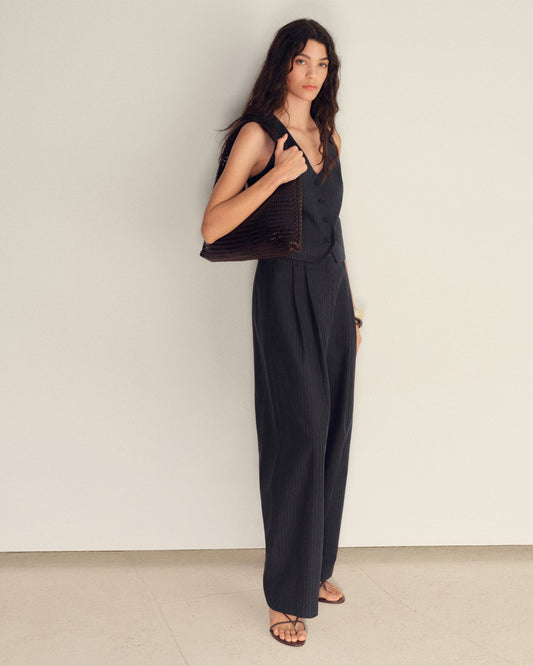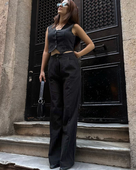 Pinstripe Vest and Wide-Leg Trousers Suit Set