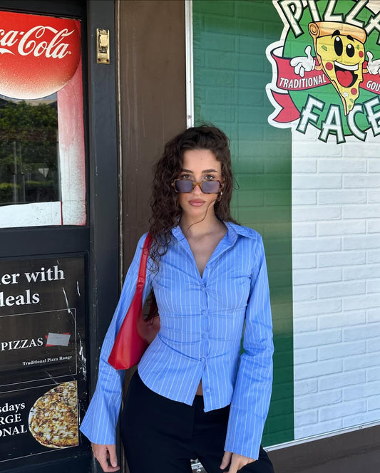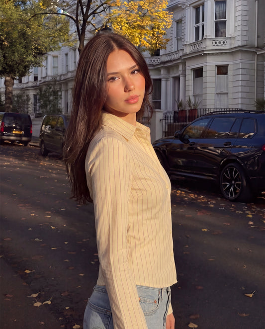Pinstripes Flared Sleeves Shirt in Butter Yellow