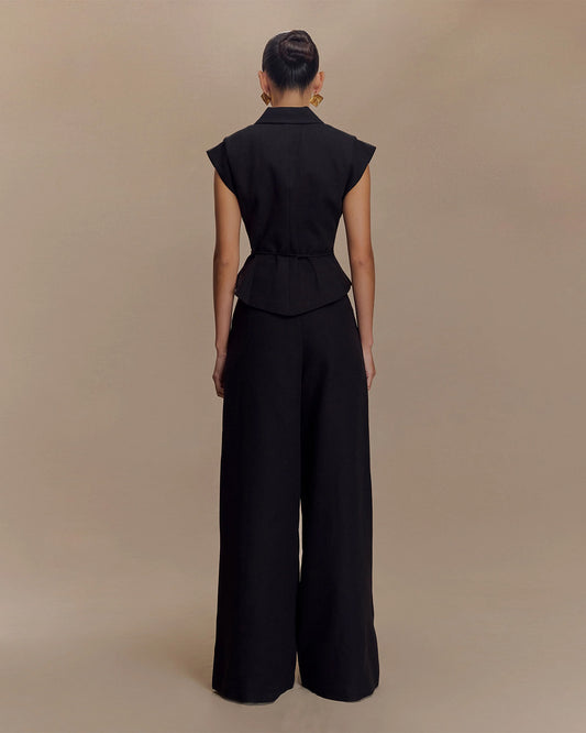 Black Tie Up Waist Coat Suit Set