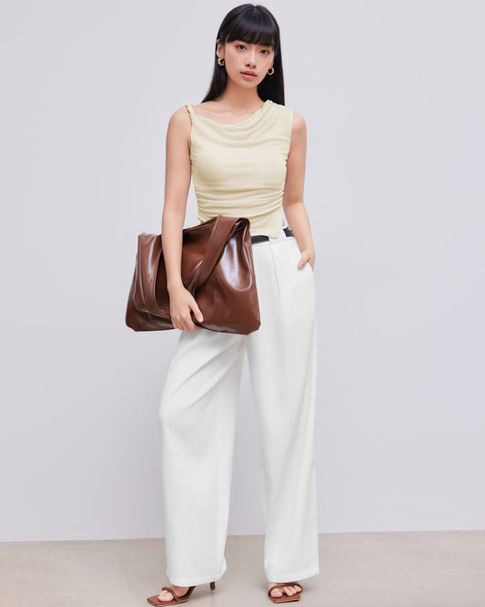 Sculpted Waist Pleated White Trousers