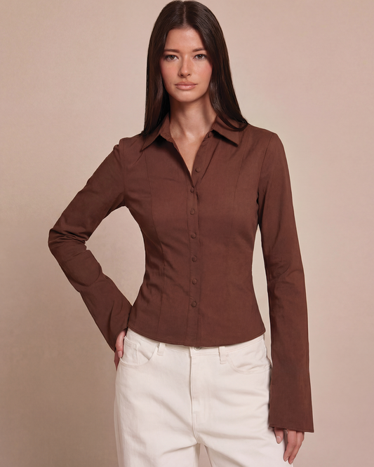 Pinstripes Flared Sleeves Shirt in Butter Yellow
