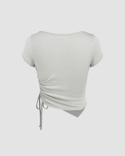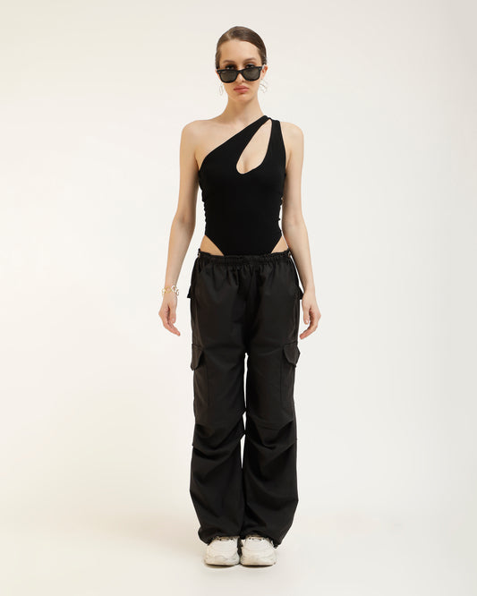 [Set of 2] Black Leather Jacket & Ruched Skirt Set