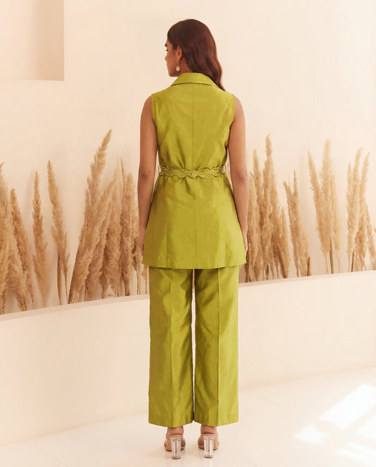 Lime Green Taffeta Top and Pant Co-ord Set