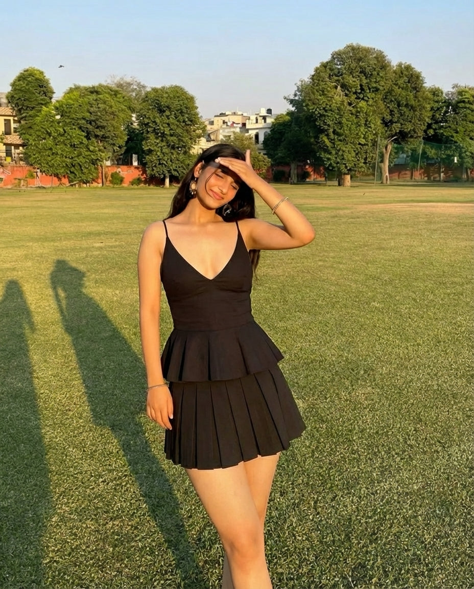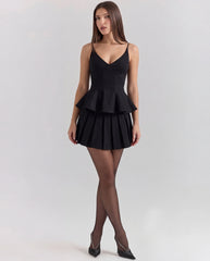 Detail: Style our black pleated mini skirt with a tucked-in tee or blouse and pair it with sneakers or boots for a casual or edgy look. Add layers like a denim jacket or cardigan and accessorize with a belt and mini bag for a chic finish.