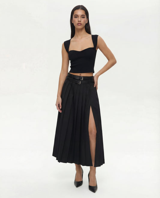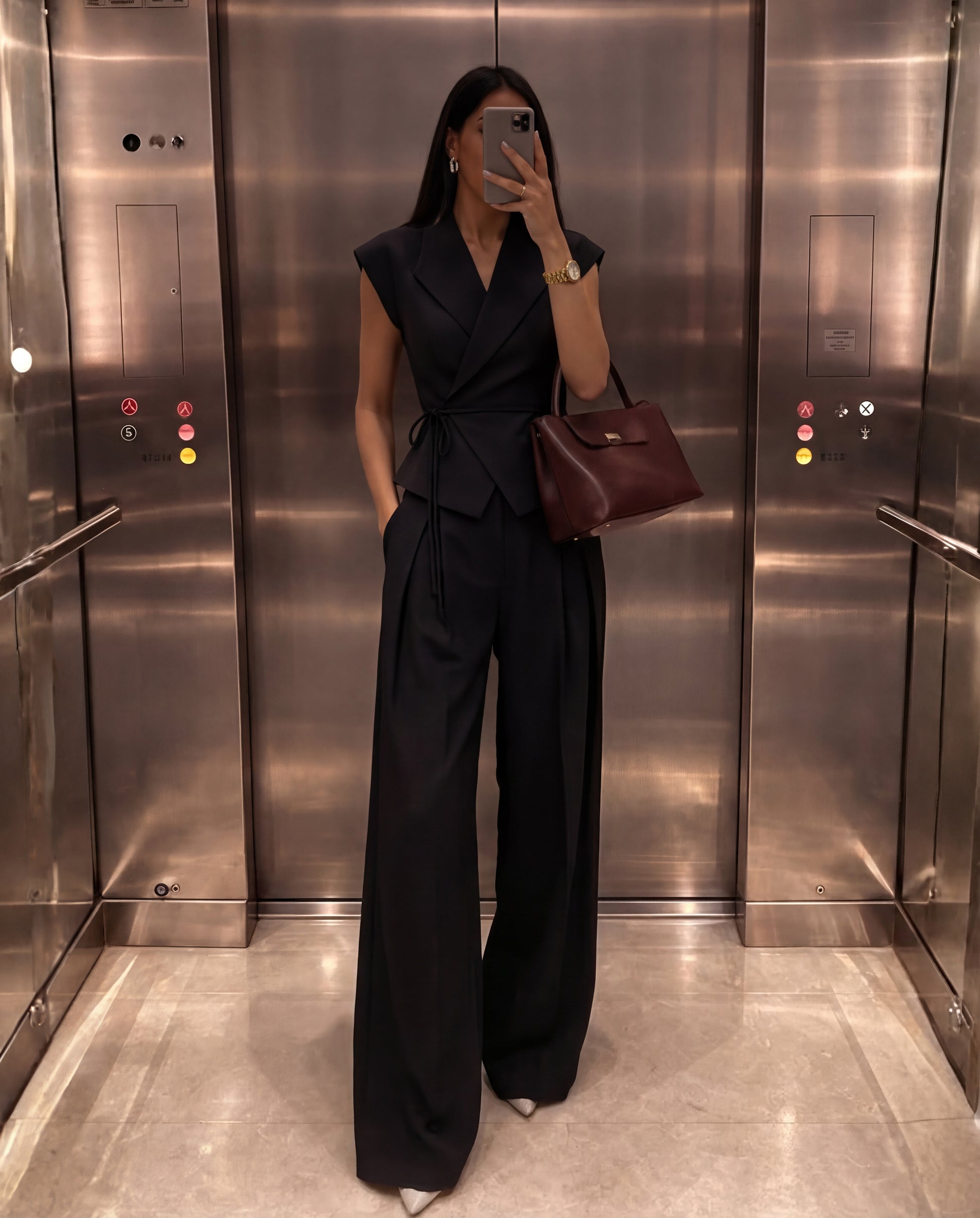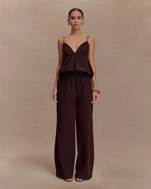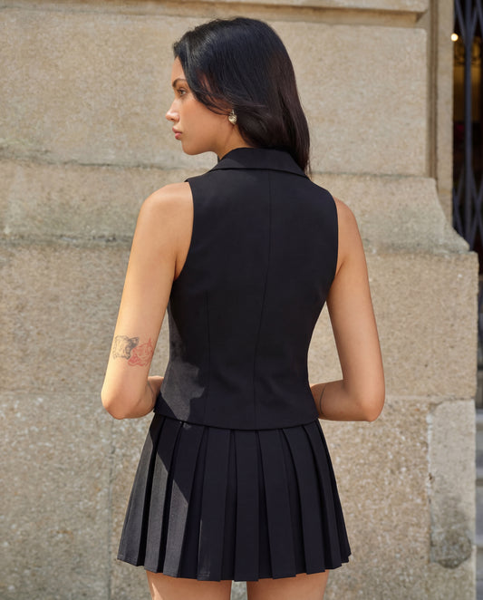 Black Tailored Peplum Vest and Wide Leg Pant Set