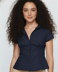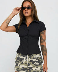 Black Waist Fitted Cotton Shirt