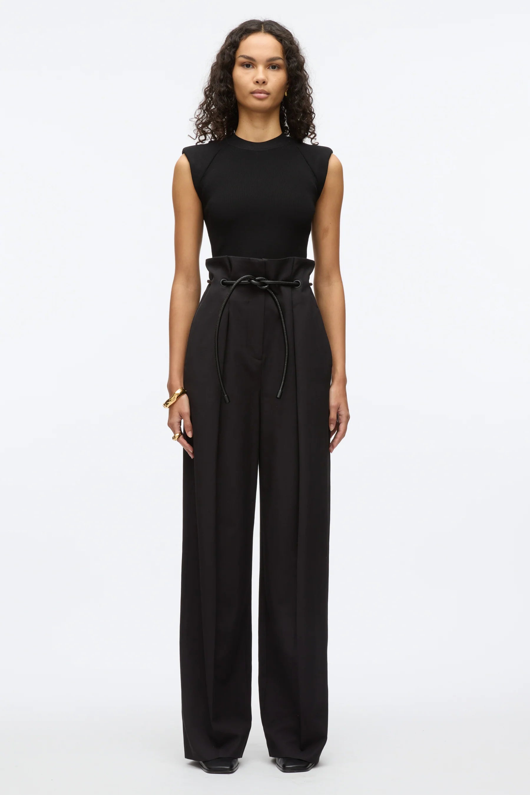 Black Tie Knot Detail Wide Leg Trouser