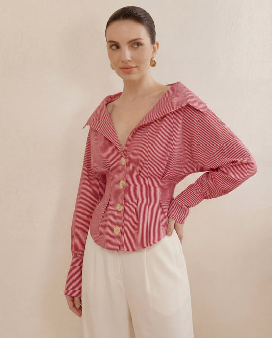 Boat Neck Slit Waist Coat - Burgundy
