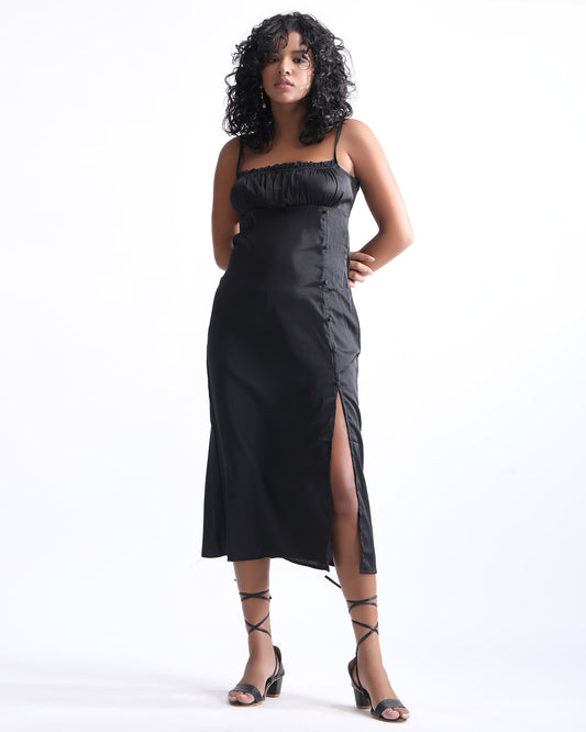 This ballooned -bubble hem dress is shaped like a dark black rain cloud thundering with style and looking oomphy on a pear-shaped body, Don't layer it, and don't over-accessorize to let this distinct style flex.