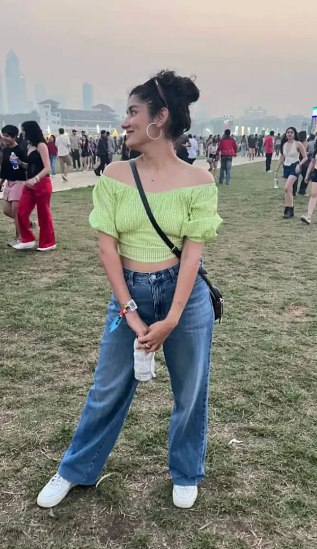 Pair a checkered puff-sleeve top with solid-colored bottoms like high-waisted jeans or a skirt. Opt for statement earrings and minimal necklaces. Keep footwear simple with sleek boots, pumps, or sneakers.