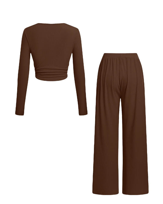Choco Brown Tie Up Top And Pants Co-Ord Set