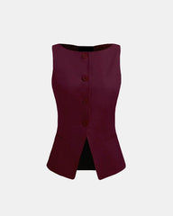 Maroon Boat Neck Slit Waist Coat And Pleated Pants With Belt