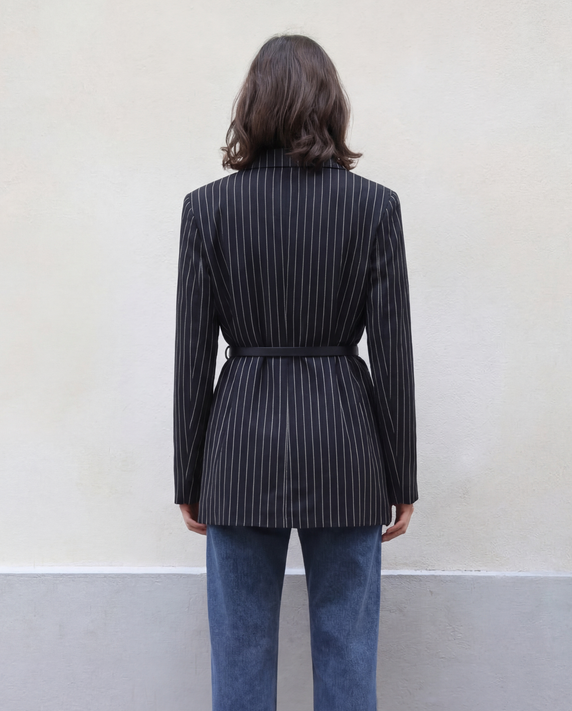 Pinstripes Double Breasted Blazer With Belt