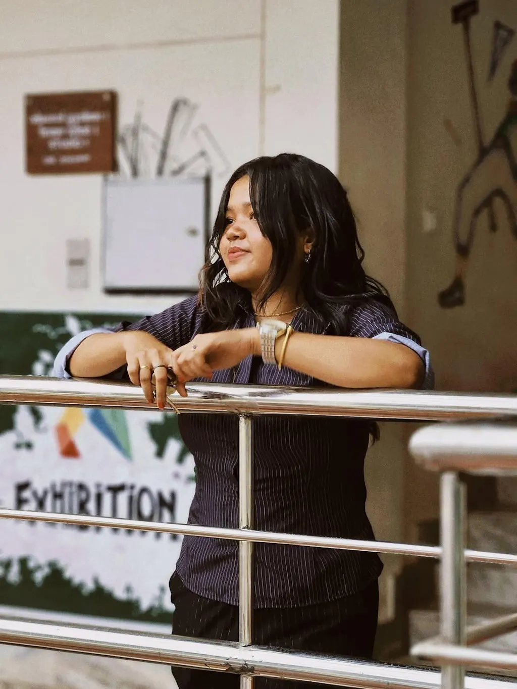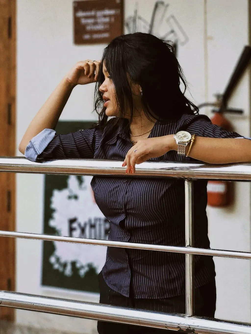 Pinstripes Flared Sleeves Shirt in Black