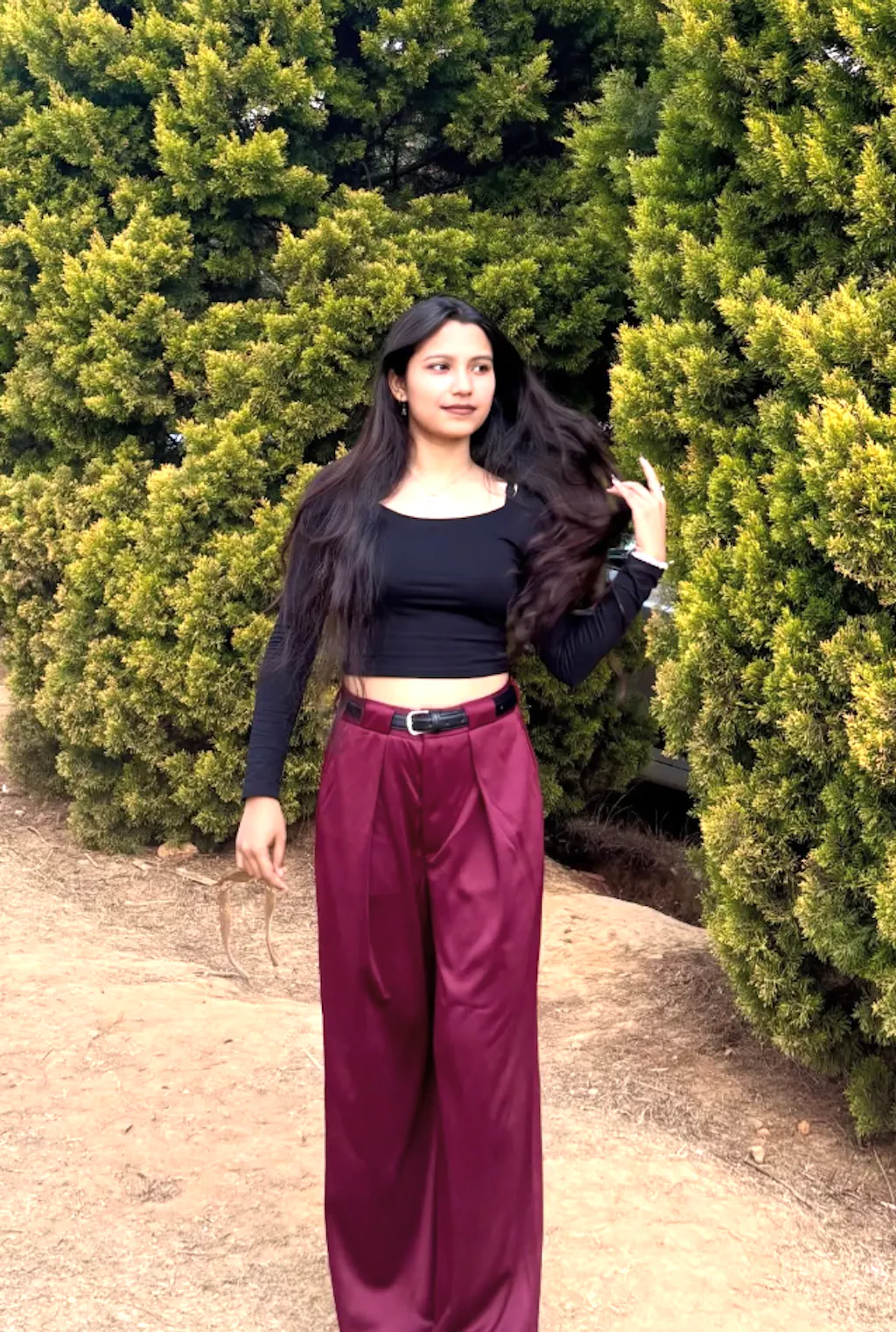 Maroon Pleated Pants With Belt