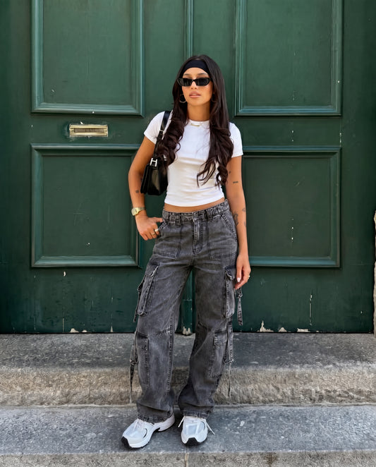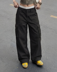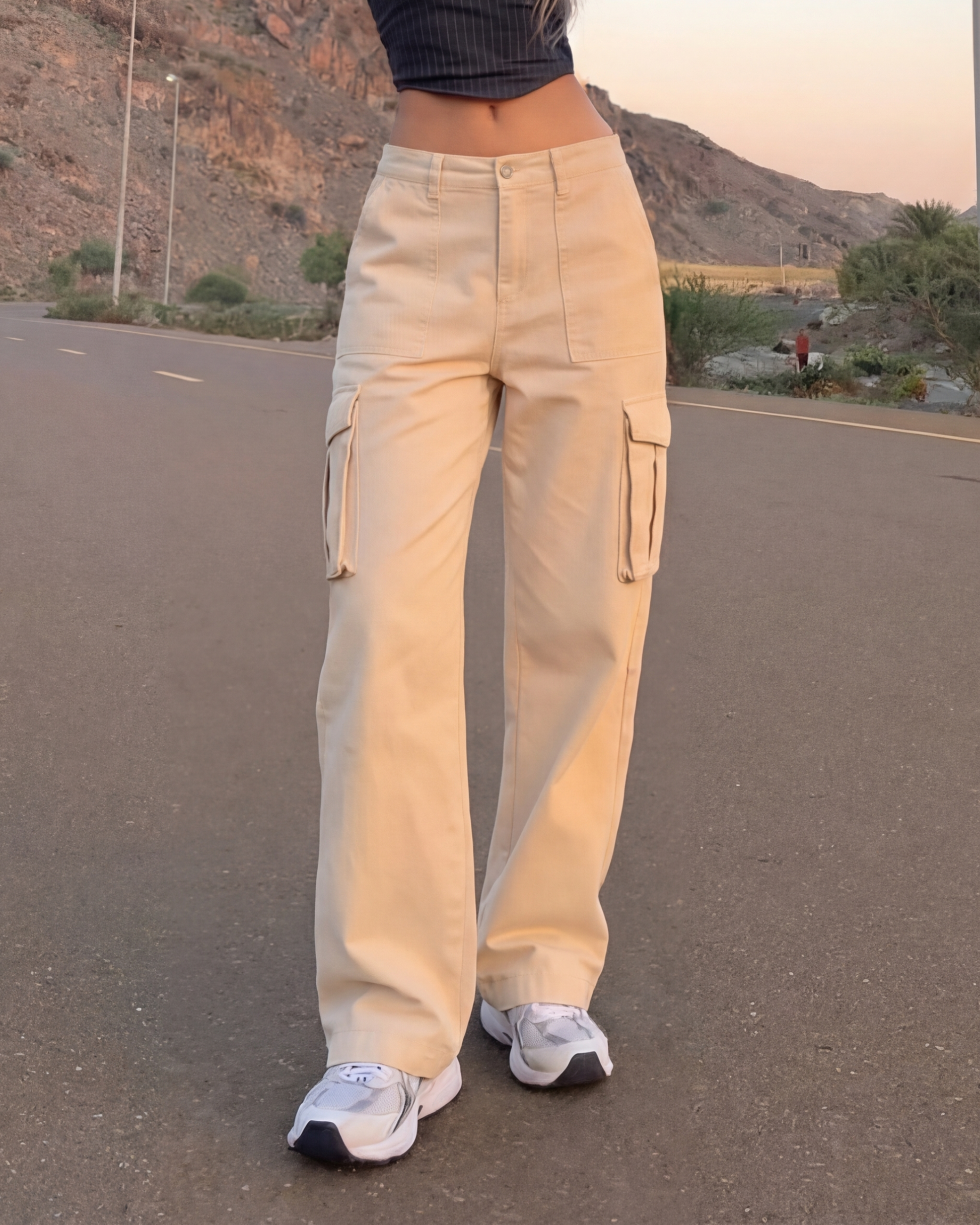 Cream Wide Leg Adjustable Cargo